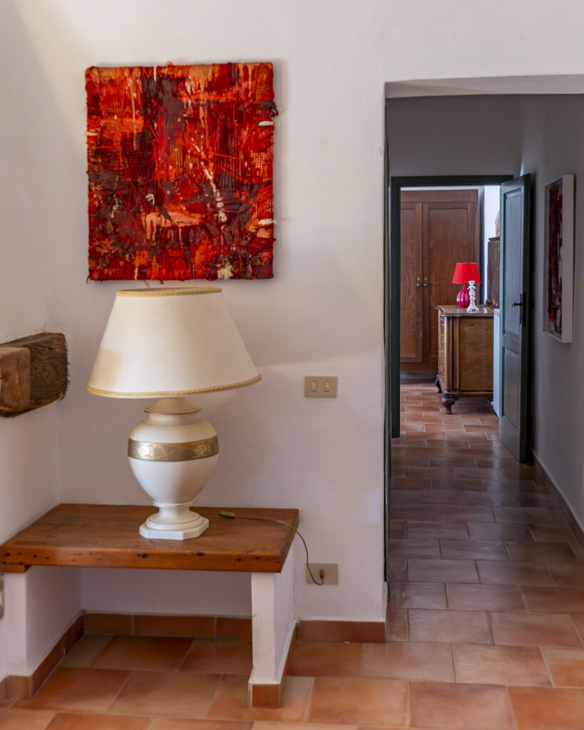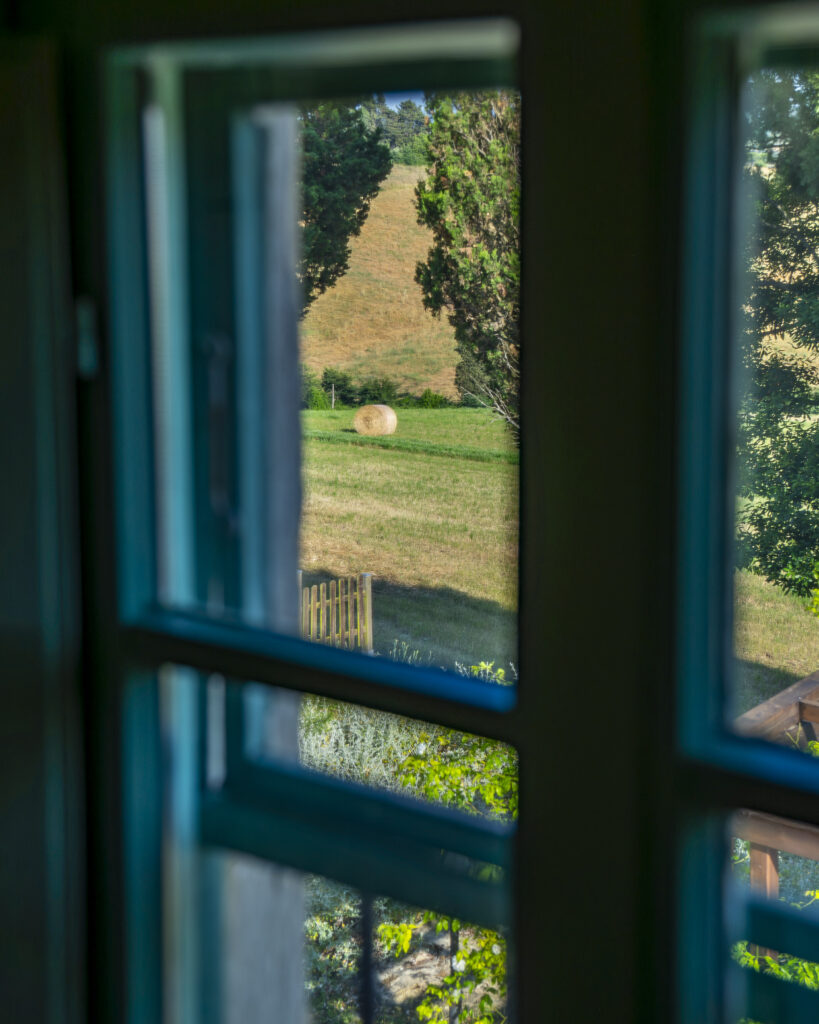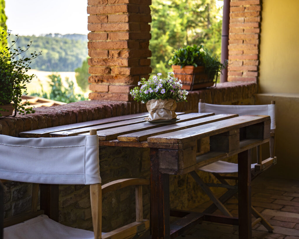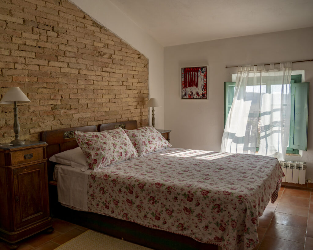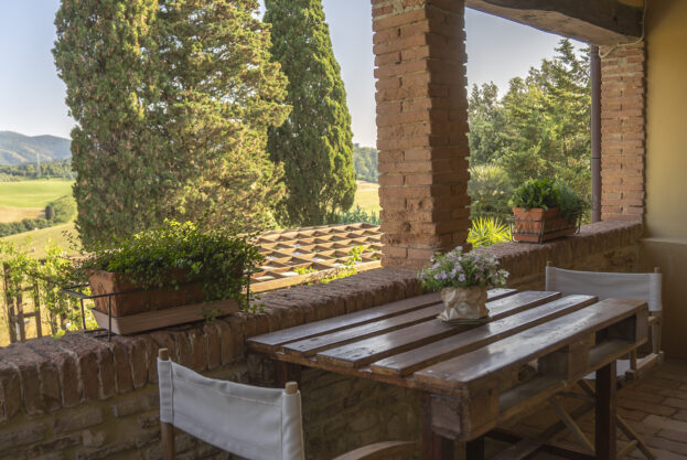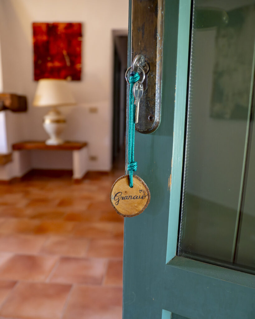 Appartamento con ingresso indipendente posto al 1° piano con ampio terrazzo abitabile dotato di tavolo e sedie per cenare all’aperto. All’interno è organizzato con zona pranzo/soggiorno, angolo cottura in muratura, due divani con vista sul fienile e sui campi di grano. Due camere da letto: una matrimoniale e una con due letti singoli, bagno con doccia.