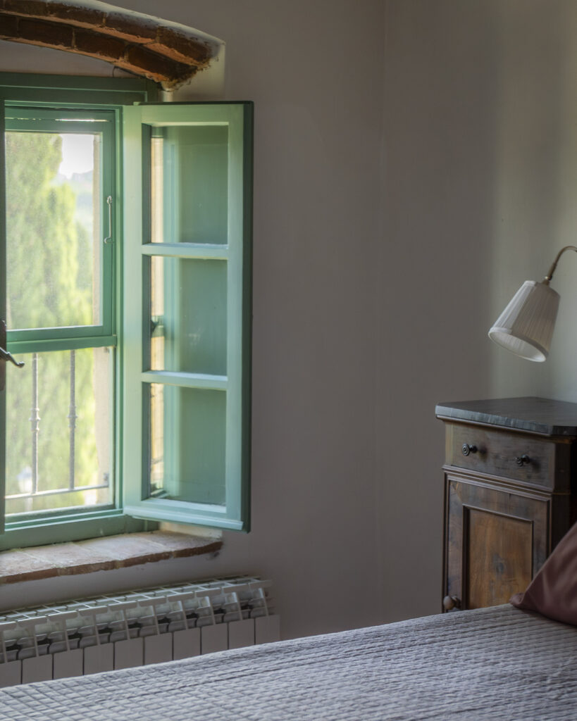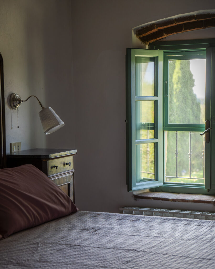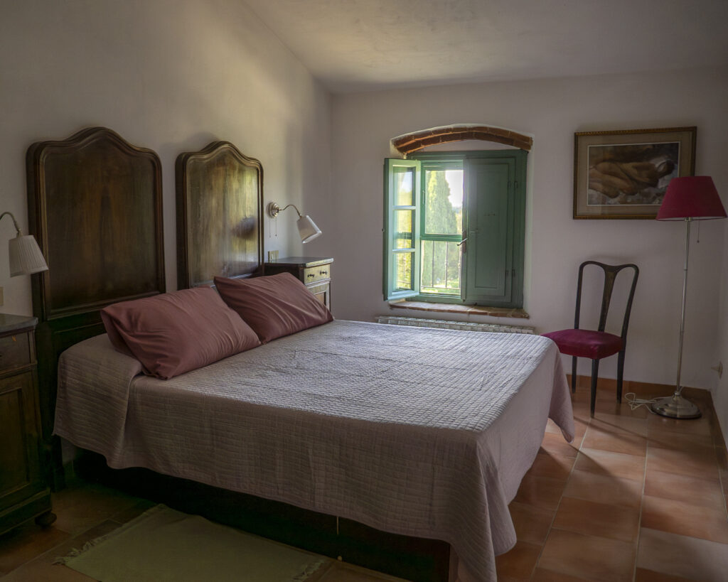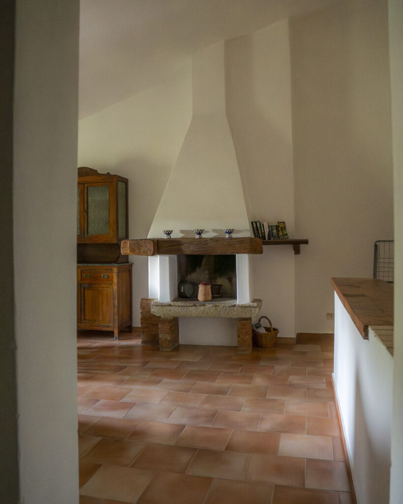 Posto al 1° piano, all’interno del casolare. Composto da sala da pranzo/soggiorno molto ampia con vista sulla piscina, con divano, televisione, caminetto e angolo cottura in muratura. Dotato di due camere da letto, una matrimoniale e una con due letti singoli, bagno con doccia. Fornito di tavolo e sedie in giardino.